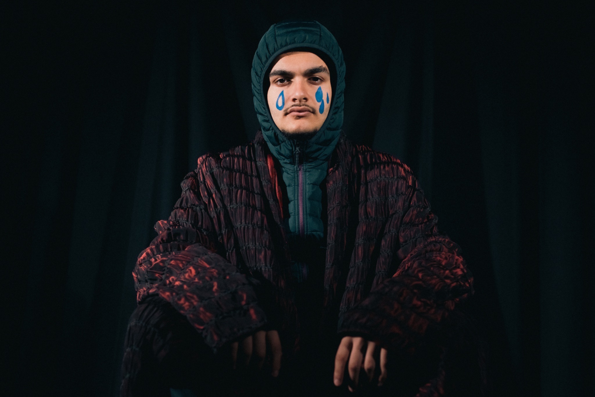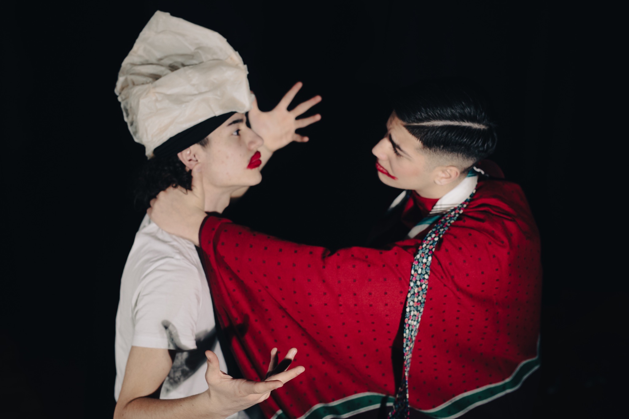In einem Fotostudio entwickeln die Schüler:innen zusammen mit einer Kostümbildnerin Kostüme, die Themen wie Gender und Identität aufgreifen. Eine Fotografin hält die entstandenen Porträts fest.